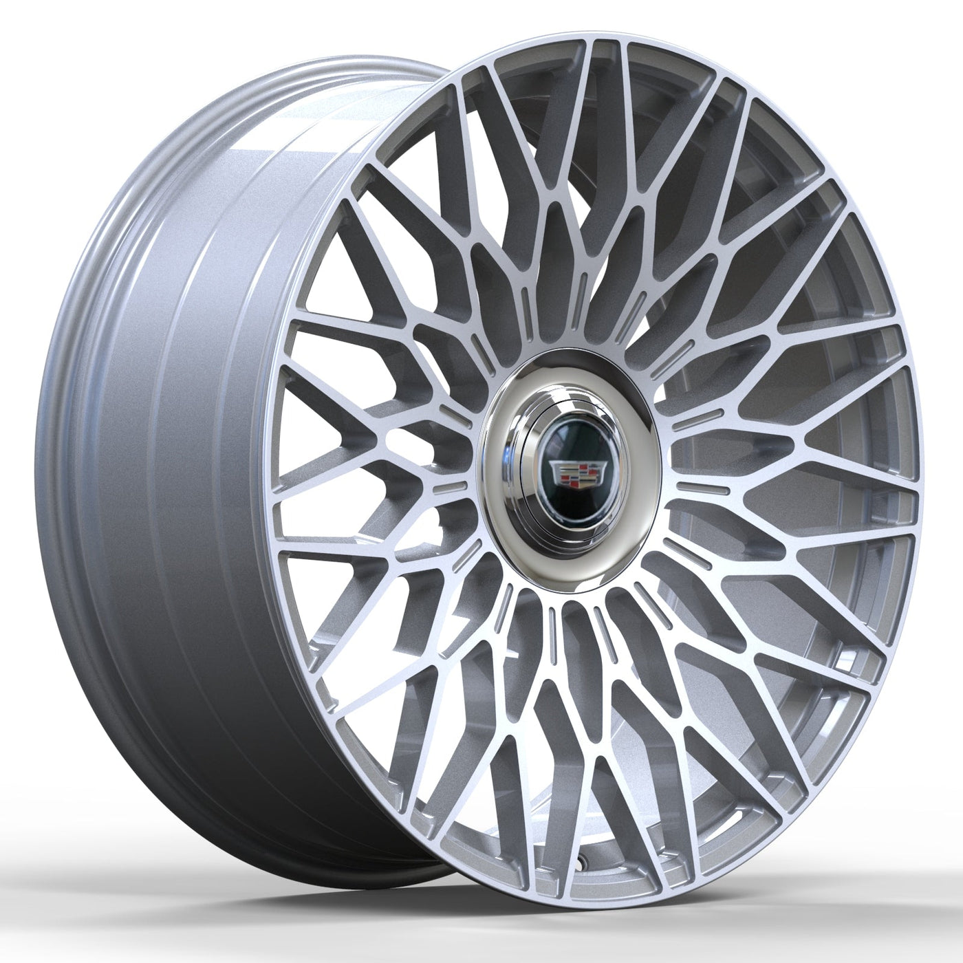 Cadillac Wheels FF01 24x10 6x139.7 Flow Forged Silver Machined fit Escalade Platinum EXT ESV Floating Caps