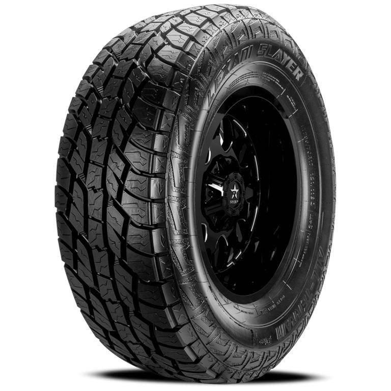 The Lexani Slayer A/T is the logical choice for All Terrain Adventure while maintaining a quiet, comfortable and reliable Highway riding experience!? You will experience all the benefits of A/T Off Road Performance with the confidence of knowing your ride on the asphalt will be uncompromised.? The Lexani Slayer tread design incorporates aggressive silica tread blocks for rain, mud, or snow performance with a unique unilateral center rib which enhances a long tread life and results in a smooth, tranquil and confident ride! Deep grooves and full depth sipes maintain reliable off-road performance with the added benefits of a pleasant highway riding experience!